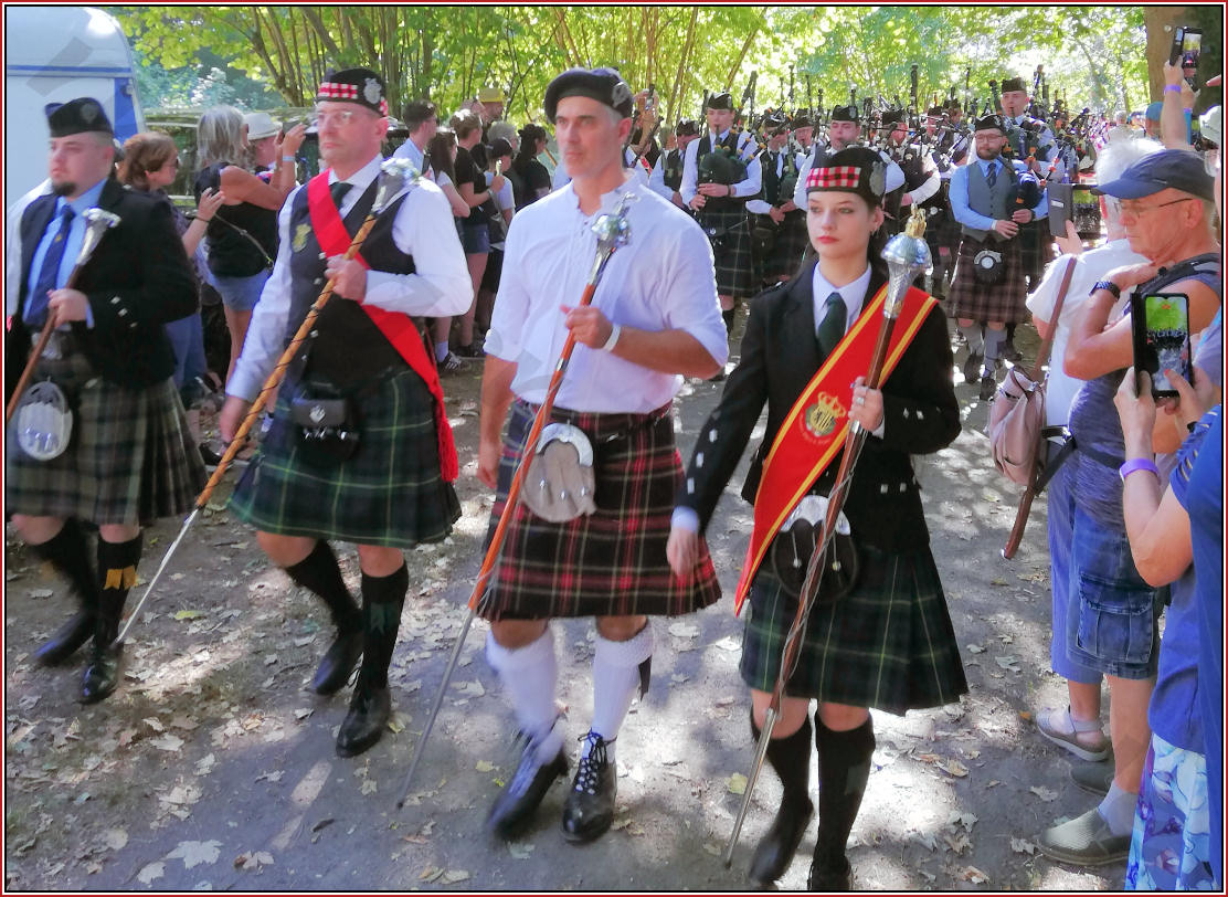 XXIV. Internationale Highland-Games T r e b s e n 19.09.-21.09.2025 Samstag 5 Euro Parkplatz 20 Euro Eintritt 11:30 Uhr großer Einmarsch der Pipe-Bands und aller Mitwirkenden ab 12:00 Uhr - Highland-Games der Amateurmannschaften auf den Bühnen: Schottische Militärtänze: Highland Dancers der Alba Pipe Band Hildesheim schottische und irische Tänze: ”Scottish Country Dancers” “Doc Taylor and the red haired Girl” Irische Stepptanzkompanie Leipzig Dr. Pat Ballantyne und Professor Ian Richardson Scottish and Irish Folk: „Fairydust“ „Balisar“ „Golden Bough“ Steve Reeves BAG Pipe-Band-Competition in den Graden IV,III, II und Open Grade Schauschafehüten mit schottischen Bordercollies Hundeshow und Falknervorführung „KILT’N’STRONG“ Strongman Wettkampf Autokreuzheben, Atlas Stones, Loglift, Conanwheel “Irish Stew” Keltischer Folk-Rock © Eine Verwendung der Bilder ohne Zustimmung des Copyright-Inhabers ist untersagt.  |